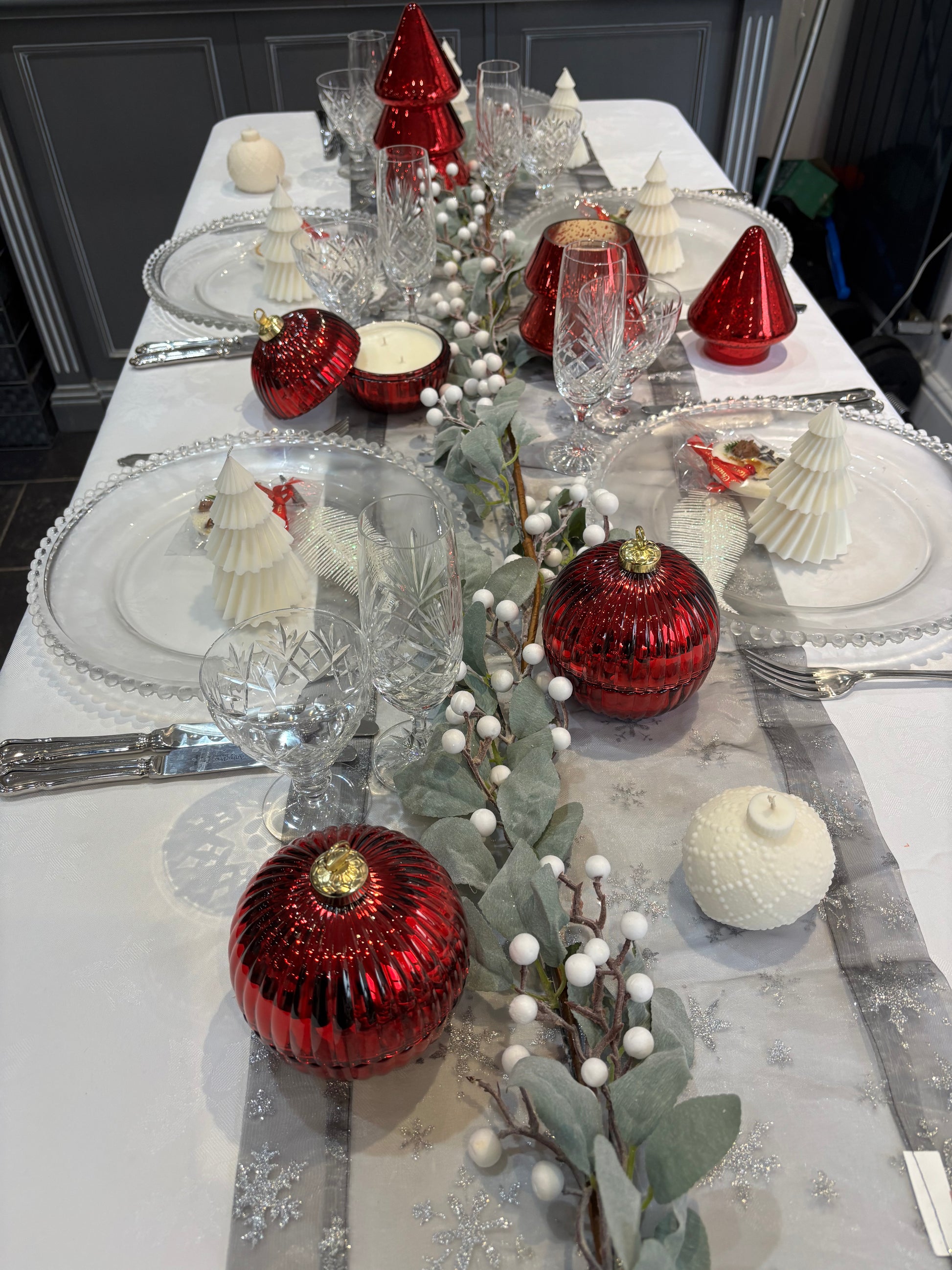 The Glass Bauble Candle collection is available in gold, red, green, silver and pearl white, ideal for gifting or a dazzling table display.